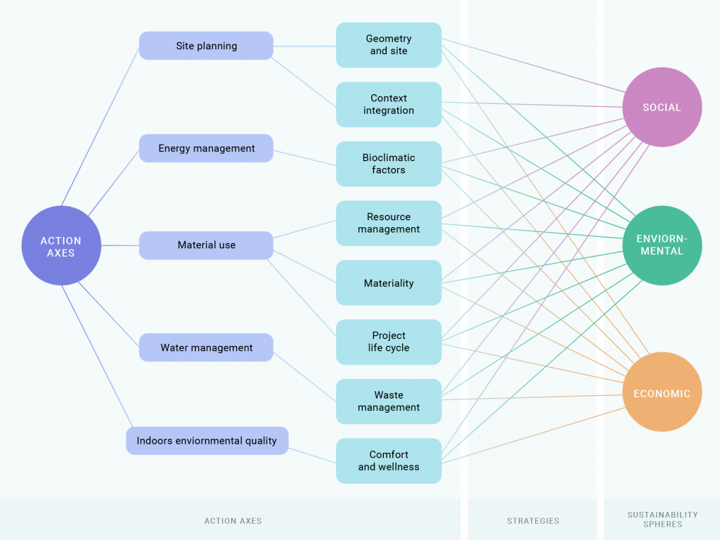 The “MSCD” was created taking into account the rating categories used by the different certification systems that have been worldwide references for sustainable buildings such as LEED, BREEAM, Green, DGNB, among others, and the 3 essential pillars of sustainable development. exposed in the “Brundtland Report”.