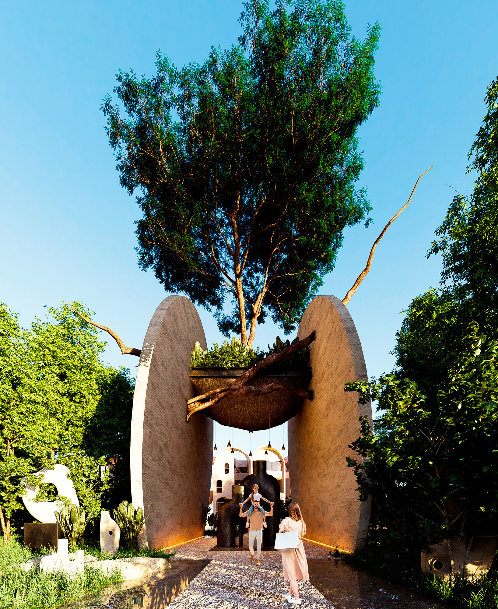 From the monumental and sculptural access to the interiors aimed at a disruptive lifestyle, Edén Tulum integrates architecture and the landscape, from which the inhabitant begins his transition to a dimension of pleasure.