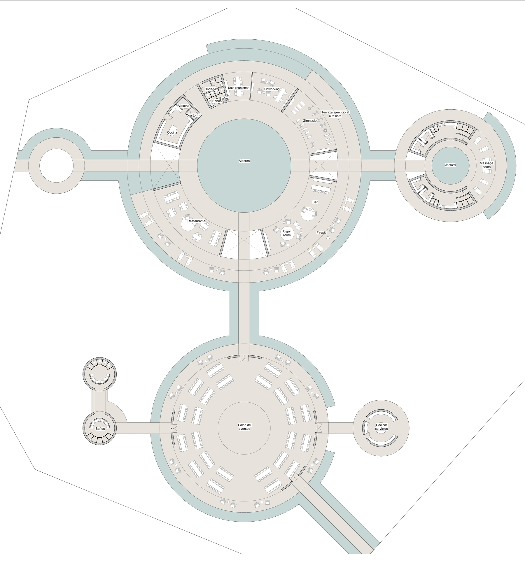 In this setting, the Alma Todos Santos Clubhouse emerges as a luxury oasis that harmoniously merges with the surrounding natural environment. Its architectural design focuses on maximizing panoramic views of the landscape, using local and sustainable materials that aesthetically integrate with the desert environment. Additionally, its facilities, such as the panoramic restaurant, integrated coworking space, gym with views, and wellness area with sauna and massages, offer a refuge of relaxation and productivity amidst the desert.