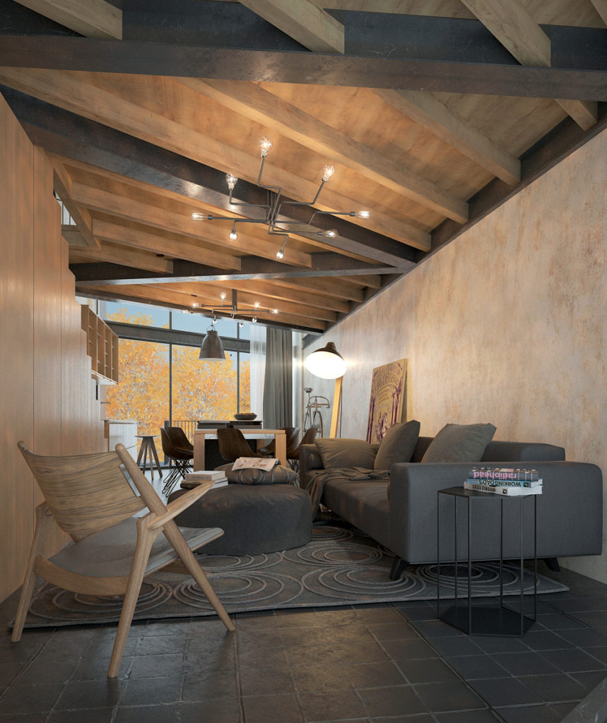 This 7 units building apartments is also focused on providing a warm interior experience which could be similar to inhabiting in a house, but with the benefits of having panoramic views. This is why all the units are provided with double-height spaces and two levels, this way an ample window facade, brings light from the exterior, while a visual connection is generated at the interior of the spaces.