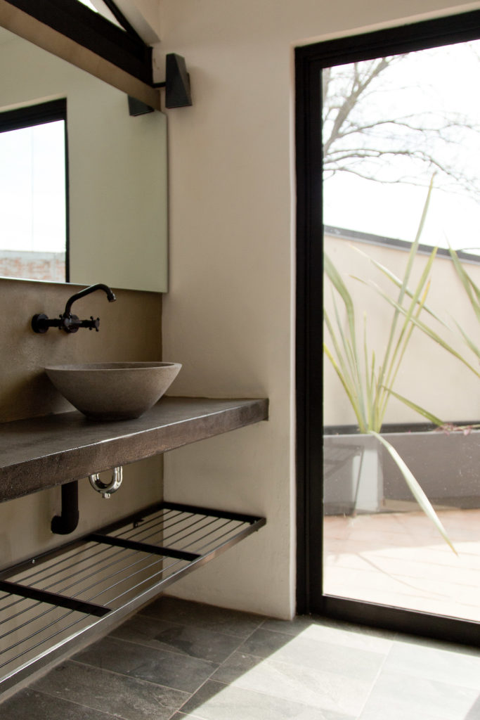 La vivienda tiene a la vez un carácter introvertido, e incorpora elementos que procuran otorgar de manera simultánea privacidad, luz y ventilación natural suficientes: un patio y una terraza interiores, celosías a base de tabique y ventanas dirigidas hacia vistas selectas.