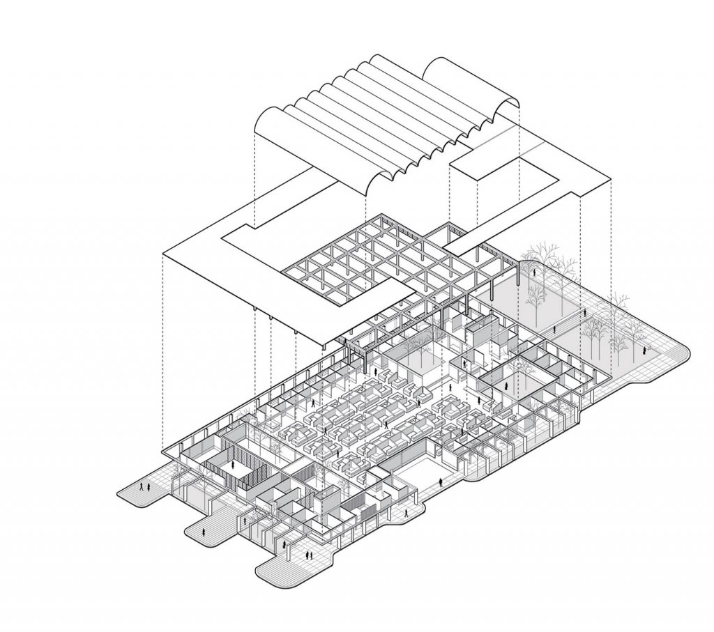 Por otra parte, una serie de patios internos y espacios múltiples difuminan los límites entre el exterior y el interior para crear un espacio público en donde desaparezcan las barreras entre estar afuera o adentro. De este modo, el nuevo edificio dota al barrio de Patria Nueva de un espacio digno y seguro, donde los habitantes pueden compartir la riqueza de sus productos, así como la multiplicidad de sus vivencias.